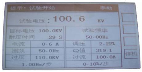 注意:手動控制加壓,不能快速旋轉(zhuǎn)調(diào)壓,調(diào)頻旋鈕,并選擇適當(dāng)?shù)牟竭M值以免系統(tǒng)高電壓快速變化,產(chǎn)生過壓,對被試品,試驗系統(tǒng)產(chǎn)生危害