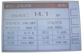 耐壓時自動跟蹤電壓,電壓正常波動時自動調(diào)整電壓到目標(biāo)電壓,異常波動時提示用戶電壓異常波動,由用戶根據(jù)試驗情況進行操作。