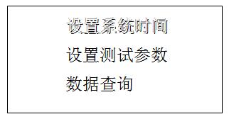 2.2.1、開機LOGO,按【菜單】鍵進入主菜單。主菜單有三個選項:“設置系統(tǒng)時間”“設置測試參數(shù)”和“數(shù)據(jù)管理”。