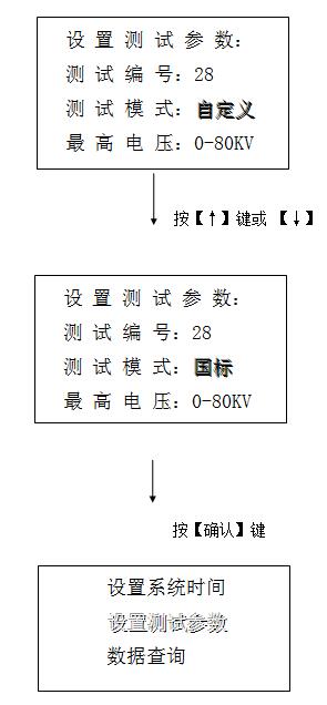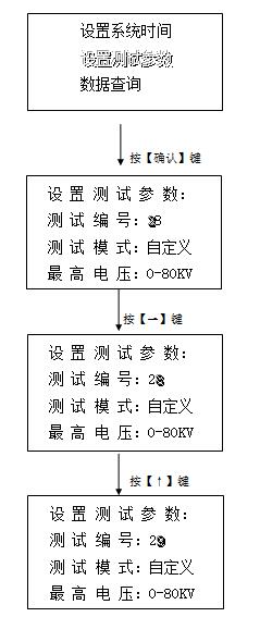 2.2.2、按【↑】鍵和【↓】鍵移動陰影光標到“設置測試參數(shù)”,再按【確認】鍵進入設置測試參數(shù)界面。