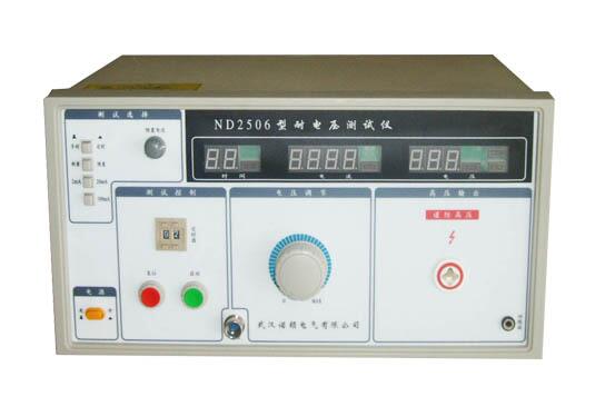 其次,在儀器使用的過(guò)程中,1、耐壓測(cè)試儀的供電電源必須有良好的接地,否則,當(dāng)儀器輸出短路時(shí),使儀器外殼帶有高壓,人接觸外殼會(huì)發(fā)生意外事故。如供電電源沒(méi)有接地,請(qǐng)使用儀器電源輸入座旁的輔助接地端,使其與大地良好接觸。2、儀器的“回路端”與被測(cè)物地端、外殼或一端連接良好,否則被測(cè)物帶有高壓,可能發(fā)生意外事故。3、打開電源前一定要將“電壓調(diào)節(jié)”旋鈕調(diào)至“0”位置,打開電源后,還要按一下“復(fù)位”按鈕,使輸出電壓斷開,測(cè)試燈不亮。4、在按下或彈出交/直轉(zhuǎn)換開關(guān)之前,要保證儀器處于“復(fù)位”狀態(tài),否則會(huì)損壞本儀器。5、在連接或接觸測(cè)試導(dǎo)線前,一定要保證輸出電壓表顯示為“0”以及“復(fù)位”狀態(tài),在電源受干擾的環(huán)境下,請(qǐng)關(guān)機(jī)后連接被測(cè)物。6、當(dāng)儀器處于啟動(dòng)狀態(tài)或測(cè)試高壓未釋之前,決不能觸及被測(cè)物、測(cè)試線或高壓輸出端。7、嚴(yán)禁將高壓輸出端的高壓與機(jī)殼短路,以免損壞高壓變壓器,測(cè)試端與機(jī)殼不相連,雖然高壓輸出端允許與回路端短路,但應(yīng)盡可能避免這種短路發(fā)生,特別是漏電流選擇在100mA檔時(shí)。