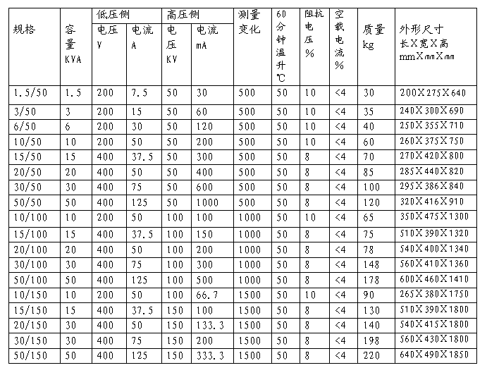 我公司經(jīng)過(guò)多年的努力,研究成功了充氣式輕型試驗(yàn)變壓器,本系列產(chǎn)品與傳統(tǒng)的油浸式輕型試驗(yàn)變壓器相比,重量上減輕了20%-60%(視電壓及容量等級(jí)而定),而且無(wú)油污染,單臺(tái)試驗(yàn)變壓器的電壓等級(jí)可達(dá)300KV。由于采用了新的生產(chǎn)工藝,產(chǎn)品的技術(shù)性能有較大的提高,特別適用于現(xiàn)場(chǎng)工作及頻繁移動(dòng)的工作條件下使用.